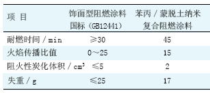 表 2 苯丙/蒙脫土納米復合阻燃涂料與飾面阻燃涂料國標的比較