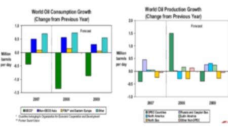 作為全球石油主要供應來源的歐佩克(OPEC)組織亦下調的需求預期。其11月份原油市場月度報告顯示,2008年世界原油日均需求量預計為8619萬桶,低于該組織此前預期的8645萬桶;2009年世界原油日均需求量預計為8668萬桶,低于該組織此前預期的8721萬桶。報告同時說,2008年國際市場對歐佩克原油的日均需求量預計為3180萬桶,2009年預計為3090萬桶,也均低于該組織此前的預期。