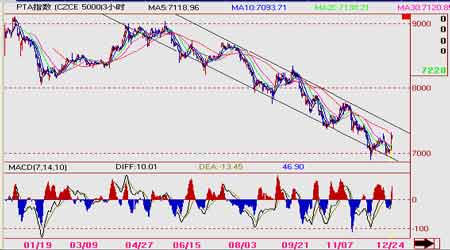 從技術面上看,鄭交所PTA期貨主力3月合約近期交投活躍,均線系統有向上發散趨勢,MACD低位形成金叉,紅柱穩步放大, DIF躍于0軸上方,顯示市場處于強勢之中,但預計60日均線處有較大阻力,若突破則有望走出熊市格局,否則將重回跌勢。