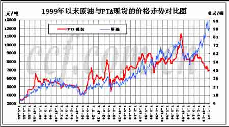 預計2008年原油價格仍將保持高位運行,這從成本上將對PTA價格起到支撐作用,后市若PTA自身供需情況能有所改善,則原油對PTA價格的影響將逐漸顯現。