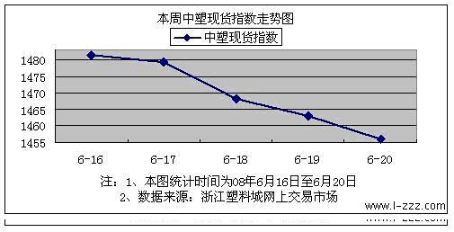 中國塑料城塑料原料市場氣氛降溫,行情震蕩下行。軟膠市場全線走跌,跌幅較大;硬膠市場走跌幅度相對較窄。至本周五15時中塑現貨指數報1456.20點,較上周末下跌27.36點。各品種具體情況如下: