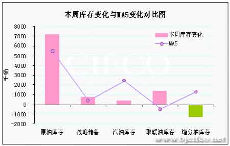本周庫(kù)存變化與MA5變化對(duì)比圖。(來源:北京中期)