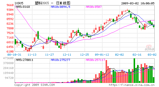 第二階段(6.10-8.22):震蕩下跌期。但是隨著國內(nèi)塑料消費進入淡季,市場對高價位的接受能力下降,消費持續(xù)低迷,庫存積壓嚴重,而且國際油價上漲乏力,觸頂后震蕩回落,對LLDPE走勢構(gòu)成利空,此后價格開始掉頭向下,跌至上市以來的低位處獲得短暫支撐。在此過程中,石化廠商出廠定價政策飄忽不定,傳言不斷,掛牌、調(diào)價促銷手段頻繁,但無奈市場積弱難返,熊形盡本文綜述:2008 年注定是全球經(jīng)濟發(fā)展史上不平凡的一年,由美國次貸危機引發(fā)的金融海嘯越演越烈,債券、股票、商品、房地產(chǎn)等市場大幅暴跌,金融危機全面爆發(fā),各個經(jīng)濟體均面臨衰退、破產(chǎn)的危險境地,并開始升級為傷及實體經(jīng)濟的“經(jīng)濟危機”。在國際油價從147美元/桶的歷史高位回落到目前40 美元/桶左右的背景下,LLDPE 作為國內(nèi)大宗商品期貨交易品種的后起之秀,同樣跌破了近些年的低點,期價最低一度低于6000 元/噸,并帶動現(xiàn)貨市場價格暴挫。消費萎靡,加之人民幣升值出口受阻,眾多塑料相關(guān)企業(yè)紛紛停工停產(chǎn),部分企業(yè)甚至破產(chǎn)倒閉,行業(yè)面臨整合洗牌的格局。LLDPE 行業(yè)積弱難返,雖有國內(nèi)石化企業(yè)限產(chǎn)挺價,但后期低價進口貨源充足,國內(nèi)消費明年料將萎縮,后市LLDPE 走勢將隨原油低位震蕩為主,價格再返萬元之上異常艱難。