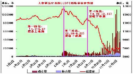 2008 年大連商品交易所LLDPE 總體走勢基本可以粗略地分為三個階段: