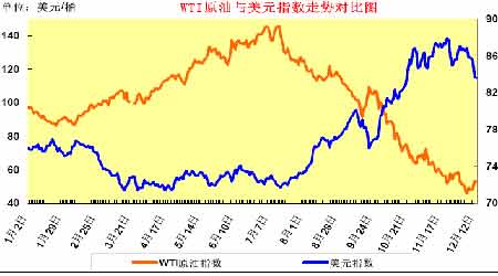 美元指數的大幅反彈無疑是除了需求減少之外油價上漲的最大推動力,而目前美元指數仍在階段高點80-88 之間震蕩,短期內上漲乏力,并有做頂下跌趨勢。市場人士認為,歐元下跌成為美元反彈的主要原因,因歐洲央行追隨美聯儲減息。同期,美元對歐元、英鎊、日元等主要貨幣都有所上漲。這直接影響了以美元計價的商品的價格暴跌。如果受到美聯儲再度降息或者其他消息的影響,美元指數短期內可能出現一定幅度的回調,這樣對油價就會形成支撐。相反,美元指數繼續震蕩或者繼續走高,又沒有多大的利多因素支持,那么油價仍會出現反復震蕩并繼續走低。