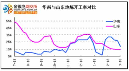 圖為華南與山東地煉開工率對比走勢圖。(圖片來源:中瑞金融)