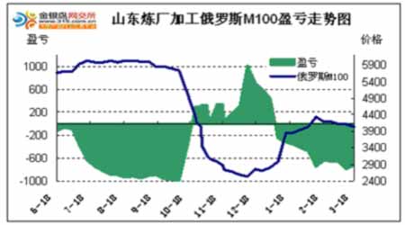 圖為山東煉廠加工俄羅斯M100盈虧走勢圖。(圖片來源:中瑞金融)