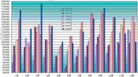 圖為天然橡膠2002——2008進口量對比圖。(圖片來源:大陸期貨)