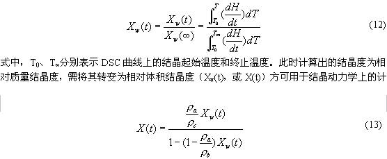 Avrami[4]從金屬結晶推出的等溫結晶動力學,用在聚合物方面頗有成效,現已得到廣泛應用。方程具體形式如下: