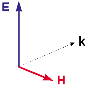 3.1873年,馬克斯威爾發現光波是電磁波,其中它的電波和磁波是相依相存不能分開 的,電場(E)、磁場(H)與電磁波進行的方向(k)這三者是呈相互垂直的關系。