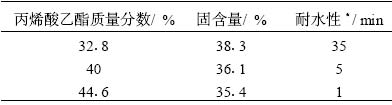 表 1   丙烯酸乙酯用量對(duì)乳液性能的影響