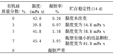 表 1   有機硅用量對硅丙乳液穩定性的影響