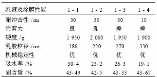 表 2 功能單體對乳液及涂膜性能的影響
