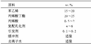 在選擇乳液共聚單體時 , 應(yīng)考慮各種單體對乳液涂膜的影響和作用、合成工藝的可操作性以及原料成本及來源等各種因素。本實驗選用苯乙烯、丙烯酸丁酯、丙烯酸 3 種單體進行研究 , 配方如表 1 。