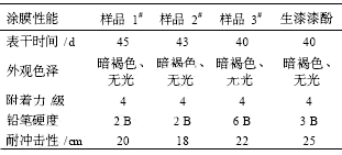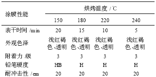 表 2   鄰苯二酚 - 桐油樹脂的熱烘干成膜性能