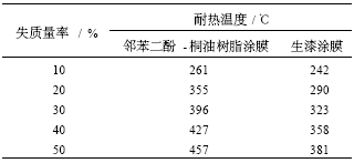 表 4   鄰苯二酚 - 桐油樹脂涂膜和生漆涂膜的熱穩(wěn)定性比較