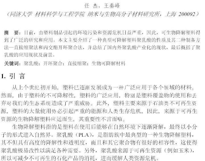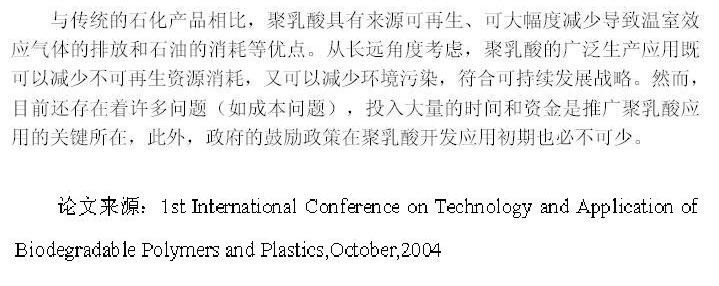 來源:1st International Conference on Technology and Application of Biodegradable Polymers and Plastics,October,2004