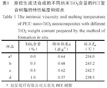 PET/納米TiO2復(fù)合樹脂采用原位生成法自制,不同樣品的性能指標(biāo)參見(jiàn)表1。
