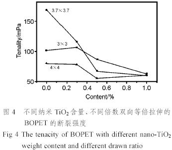 3.3 納米TiO2的引入對(duì)BOPET力學(xué)性能的影響