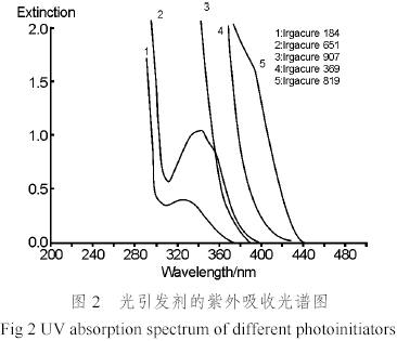 2.2 顏料和引發(fā)劑的紫外吸收光譜