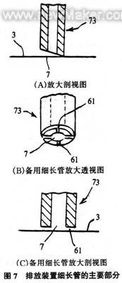 圖7(A)是一個放大的剖視圖,顯示排放裝置中細長管的主要部分;