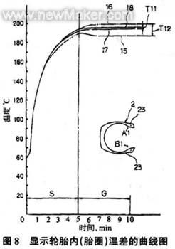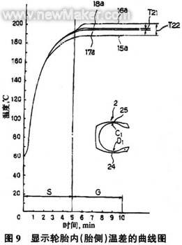 圖8和圖9是顯示輪胎內溫差的曲線圖.圖中符號S表示加熱介質為蒸汽,符號G表示加壓介質為氣體。
