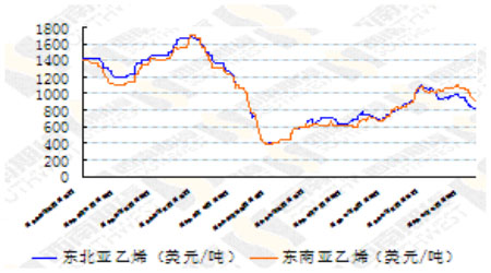 圖為乙烯現(xiàn)貨價(jià)格走勢(shì)圖。(圖片來源:西南期貨)