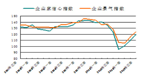 根據(jù)最新公布的數(shù)據(jù),第三季度,我國企業(yè)景氣指數(shù)與企業(yè)家信心指數(shù)均有大幅度回升,其中企業(yè)景氣指數(shù)環(huán)比上升8.5,為124.4,企業(yè)家信心指數(shù)環(huán)比上升9.9,為120.1,顯示我國經(jīng)濟(jì)復(fù)蘇的局面更加穩(wěn)固,各行業(yè)對我國未來經(jīng)濟(jì)格局更有信心。