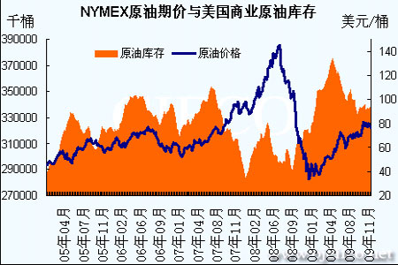 圖為NYMEX原油期價與美國商業(yè)原油庫存走勢圖。(圖片來源:北京中期)
