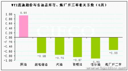 WTI原油期價與各油品庫存、煉廠開工率相關系數走勢圖。(來源:北京中期)