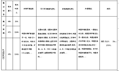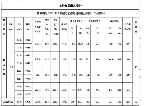 從表上看出,由于它是長(zhǎng)絲無(wú)紡布,其強(qiáng)力很高,最高M(jìn)D可達(dá)到419N/5cm,CD值可達(dá)到260N/5cm,梯形撕裂強(qiáng)度可達(dá)到149N/5cm,是一些短纖維超纖非織造布無(wú)法比擬的。其吸水量與吸濕速度及透氣量均較為理想。