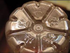 礦泉水瓶的底部都有一個帶箭頭的三角型 , 三角型里面有一個數字,不同數字代表不同的塑料材料。