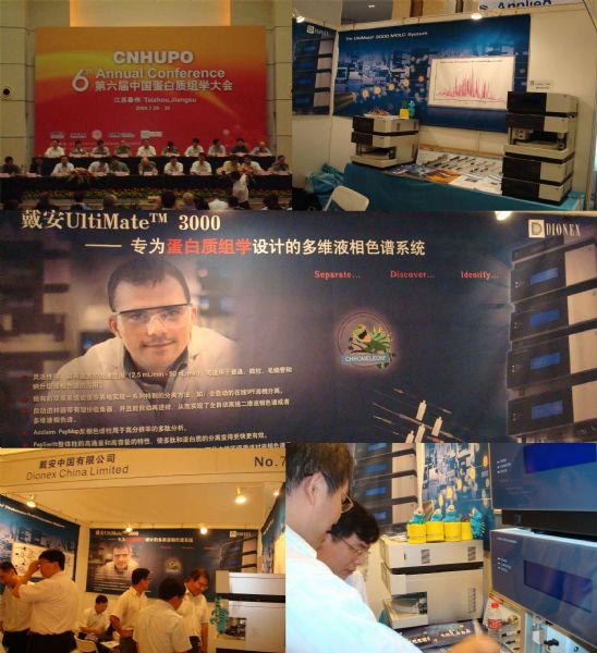 此次大會由中國生物化學與分子生物學會蛋白質組學專業委員會(CNHUPO)主辦,北京蛋白質組研究中心和復旦大學共同承辦的第六屆中國蛋白質組學大會定于2009年7月28~31日在江蘇省泰州市召開,共有600余各單位用戶參加了此次會議。戴安公司市場部和液相產品專家等在這次大會上展示了自己蛋白質領域新產品,雙梯度液相DGLC和全二維離線蛋白分離Nano-LC及鈦液相系統,該系列液相產品配備上質譜檢測器,與同類產品相比較顯示出了很大的優勢特點,如一臺雙梯度液相相當于兩臺液相,Nano-LC自動進樣器同時又是餾分收集器,鈦液相系統的泵對蛋白質比較不銹鋼泵和惰性流路有明顯優勢。作為此次中國蛋白質組學大會的銀牌贊助商,戴安公司舉辦了蛋白質組學支撐技術專題會議,戴安公司新加坡技術專家講蔡濱博士解了戴安公司Nano-LC在全自動離線二維蛋白質分離上的應用,聽眾聽取該技術講解后,對戴安公司蛋白質領域產品更加了解,并表達了合作意向。