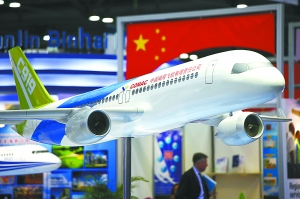 國產C919大型客機模型昨天首次揭開神秘面紗,亮相亞洲航展