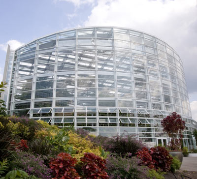 Phipps溫室的“重大活動中心”也采用了PPG生產的玻璃產品。該中心毗鄰屢獲殊榮的熱帶雨林溫室,采用的是Solarban70XL陽光控制低輻射玻璃。這款玻璃的可見光透射率為64%,能阻擋73%的熱量,節能率要比同類產品高出29%。因此,它可以節約能源并降低成本,還能減少建筑物冷卻設備的使用。