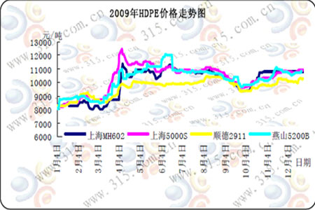 就2009年全年來看,國內熔指2高壓由年初的8200元/噸上漲至年末的12700元/噸,漲幅為54%強,熔指2線性由年初的8000-8100元/噸上漲至年末11500元/噸,漲幅43%強,低壓各品種漲幅在25-35%。