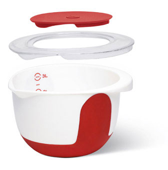 在制造“Mix&Bake”攪拌容器組合的同時(shí),EMSA公司也同樣因?yàn)門HERMOLASTK無(wú)臭無(wú)味及符合食品應(yīng)用的特性而獲益良多。除了與ABS良好接合外,這產(chǎn)品使用的TPE能確保容器底部以及把手的抓附力。特別的是,染成紅色的TPE元素“penetrate”,在容器的內(nèi)部提供業(yè)余廚師實(shí)用的指標(biāo):注入的容量指標(biāo)有公升數(shù)及杯數(shù)的指示,明顯清晰,“永不損耗”。除此之外,輕度染色的TPE,折疊式色拉脫水器使用的是綠色,攪拌容器組合使用的是紅色,讓EMSA公司的廚房用品儼然成了精致的設(shè)計(jì)藝術(shù)品。TPE材料在顏色方面靈活變換的特性讓EMSA在廣告及宣傳活動(dòng)有更多的可能性。