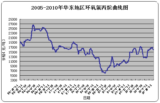 2010年10月,華東環(huán)氧氯丙烷市場在上半月保持了增長勢頭,在月中達到17000元,在10月20日弱勢盤整,部分商談價格在16000-16500元之間,由于國家加強對節(jié)能減排的審查力度,下游多數(shù)中小環(huán)氧樹脂廠家停車,需求大減,對環(huán)氧氯丙烷市場的價格造成影響。