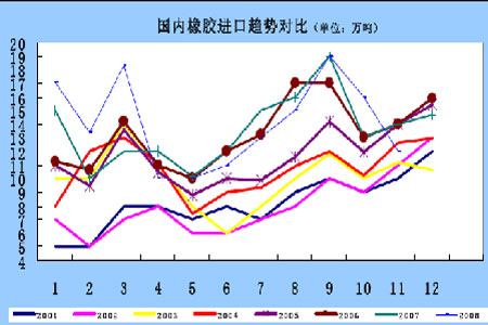 我國天然橡膠月度進口情況