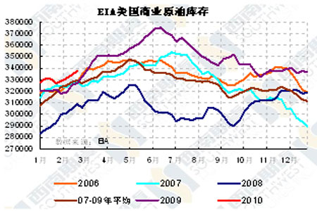 圖為EIA美國商業(yè)原油庫存走勢圖。(圖片來源:西南期貨)