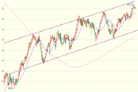 從技術(shù)上看,2009年中以來,原油一直處于一個(gè)寬幅震蕩上行的趨勢中。本次突破85美元之后,價(jià)格已經(jīng)觸及上行震蕩區(qū)間上沿,短期有橫盤或者回調(diào)的需要。