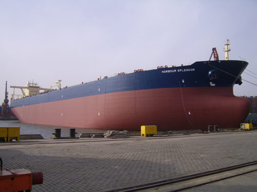 “壯麗海港”號(hào)屬于丹麥CLIPPER集團(tuán),總噸位298000噸。中遠(yuǎn)關(guān)西于2008年一舉贏得包括該船在內(nèi)的8艘30萬(wàn)噸VLCC的供漆合同,為其提供防腐涂料。“壯麗海港”號(hào)作為其中第一艘,于2009年5月在大連船舶重工開(kāi)工,2010年3月22日正式交船,其余中標(biāo)的30萬(wàn)噸VLCC也將于后幾年陸續(xù)完工。