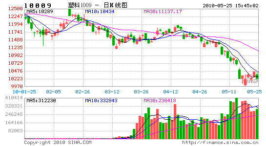 LLDPE期貨周一大幅下挫后在萬元關口觸底反彈,隨后陷入震蕩行情。主力合約L1009開于10500,盤中最高10545,最低9970,尾盤報收于10235,下跌455點,跌幅4.26%,成交量增加358手至161.1萬手,持倉量減少8660手至92374手。