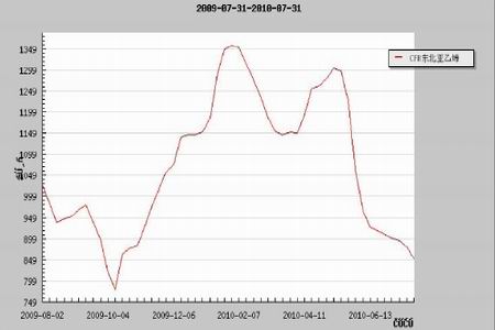 圖為線性PE價(jià)格走勢(shì)圖。(圖片來源:上海化工品交易市場(chǎng))