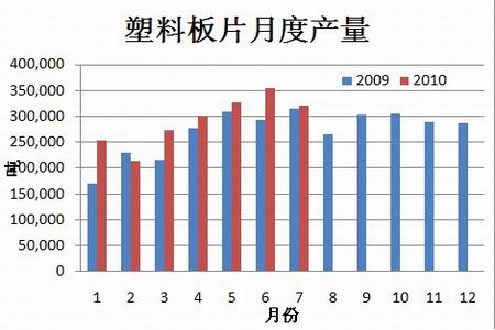 7月份,我國(guó)塑料制品產(chǎn)量較6月份有明顯下降。7月份天氣炎熱,房地產(chǎn)業(yè)出現(xiàn)淡季,下游型材生產(chǎn)也出現(xiàn)季節(jié)性回落。其中7月份板片材生產(chǎn)僅有32萬(wàn)噸,同比僅增長(zhǎng)0.45%,而環(huán)比更下降為9.23%。而塑料條棒環(huán)比下降幅度達(dá)到10.38%。這與我們前期的判斷相一致。
