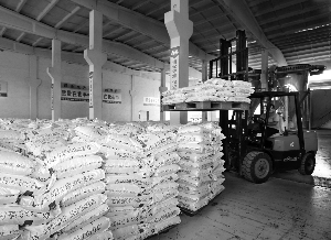 河北精信化工集團針對國內外對環保無毒鈣鋅穩定劑產品需求量不斷增加的市場形勢,積極同印度塞納化學公司合作,共同投資二點二億元建成了年生產能力達六點五萬噸的鈣鋅穩定劑生產線,已成為亞洲生產環保無毒鈣鋅穩定劑產品的最大廠家。該公司產品不僅暢銷國內市場,還遠銷印度、日本、美國及歐洲市場。圖為該公司正組織產品入庫。