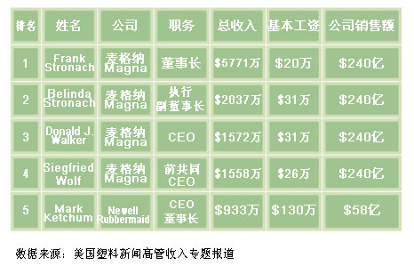 美國塑料企業高管收入排行