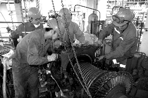 九江石化公司焦化裝置氣壓機組檢修9月24日全面展開,預計10月中旬具備試車條件。氣壓機組是該公司100萬噸/年延遲焦化裝置的核心設備,此次檢修將更新壓縮機轉子,汽輪機轉子送到杭州汽輪機廠做動平衡,并調整機組軸系對中、檢修研磨軸瓦、清理轉子及靜葉等,解決機組運行振動大等設備隱患和缺陷。 圖為九江檢安工程公司檢修九江石化焦化裝置氣壓機組。