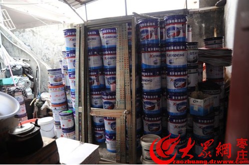 滕州警方端掉制售假油漆窩點 繳獲近千桶