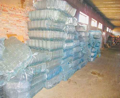 該工廠沒有任何證照,生產車間內只有簡單的吹瓶器,生產過程中無任何消毒措施,所生產的塑料瓶含有毒成分,黑工廠被查封,負責人被刑拘。